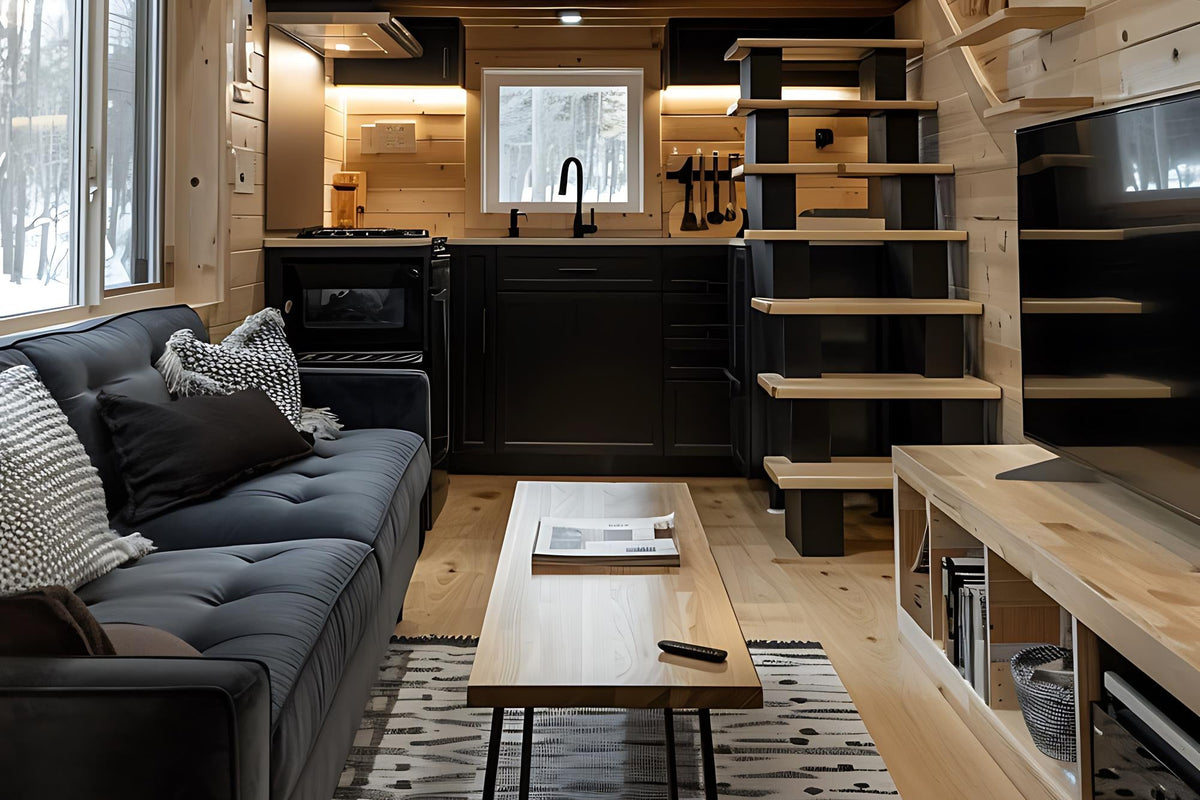 Découvrez un concept intérieur intelligent conçu par des professionnels de haut niveau, présenté à travers des rendus de haute qualité et un modèle GLB interactif avec visualisation VR/AR complète. Parfait pour explorer en détail l’un de nos modèles de tiny houses les plus populaires.